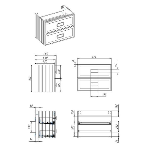 Тумба под раковину La Fenice Cubo FNC-01-CUB-G-80-2 77.6 смПодвесная тумба La Fenice Cubo TWIN FNC-01-CUB-G-80-2 обладает рядом неоспоримых преимуществ. Тумбу можно оснастить встраиваемой раковиной (арт. CU.NN.80), либо же приобрести столешницу в подходящем цветовом решении (арт. FNC-03-PL01-80, FNC-03-VS03-80) и установить на неё раковину-чашу. К данной тумбе необходимо выбрать белые или черные ручки, которые включены в стоимость тумбы (FNC-04-CUB-B-80 - белые; FNC-04-CUB-N-80 - черные). За счет входящего в комплект сифона Prevex, тумба обладает полноценными ящиками для хранения (без выреза). Ящики выполнены в фантазийной цветовой гамме "Лён антрацит". Тумба оснащена скрытыми доводчиками плавного закрывания частичного выдвижения Samet (Турция) и подвесным регулируемым механизмом Camar (Италия). Фасад и корпус тумбы покрыты краской и матовым лаком, что является надёжной защитой от влаги. Прекрасным и функциональным дополнением к тумбе станет пенал La Fenice Cubo серо-зеленого цвета FNC-05-CUB-G-30