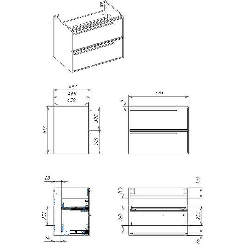 Габариты корпуса тумбы (ШхВхГ): 776х613х483 мм.