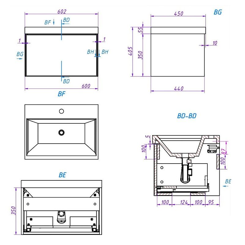 Тумба под раковину La Fenice Simpla FNC-01-SIM-BG-60 Синяя матовая 60 см Подробнее