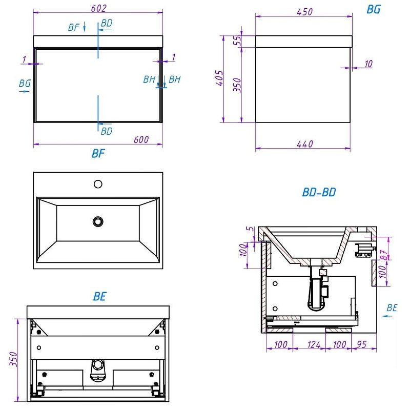 Габариты корпуса тумбы (ШхВхГ): 600х350х440 мм.