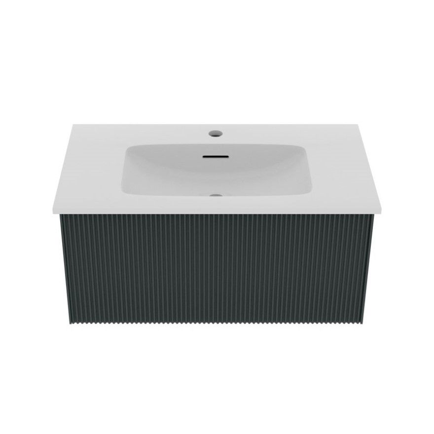 Тумба под раковину La Fenice Terra FNC-01-TER-G-80 74 смНовая коллекция Terra - это история долгого и кропотливого поиска уникального, ни на кого не похожего дизайна, в сочетании с современным качеством. Ультратонкая и идеально ровная раковина, механизм открывания push-to-open, плавное закрывание дверей и ящиков.Подвесная тумба La Fenice Terra FNC-01-TER-G-80 обладает уникальным, ни на что не похожим дизайном. Запатентованная система Samet Push-Open Soft Close позволяет совмещать бесшумное закрывание и открытие при помощи касания. Фасад и корпус тумбы покрыты краской и матовым лаком, что является надёжной защитой от влаги. Ультратонкая и идеально ровная раковина вкупе с современным качеством тумбы позволят почувствовать незабываемый комфорт в ванной комнате. Прекрасным и функциональным дополнением к тумбе станет пенал La Fenice Terra серо-зеленого цвета FNC-05-TER-G-30