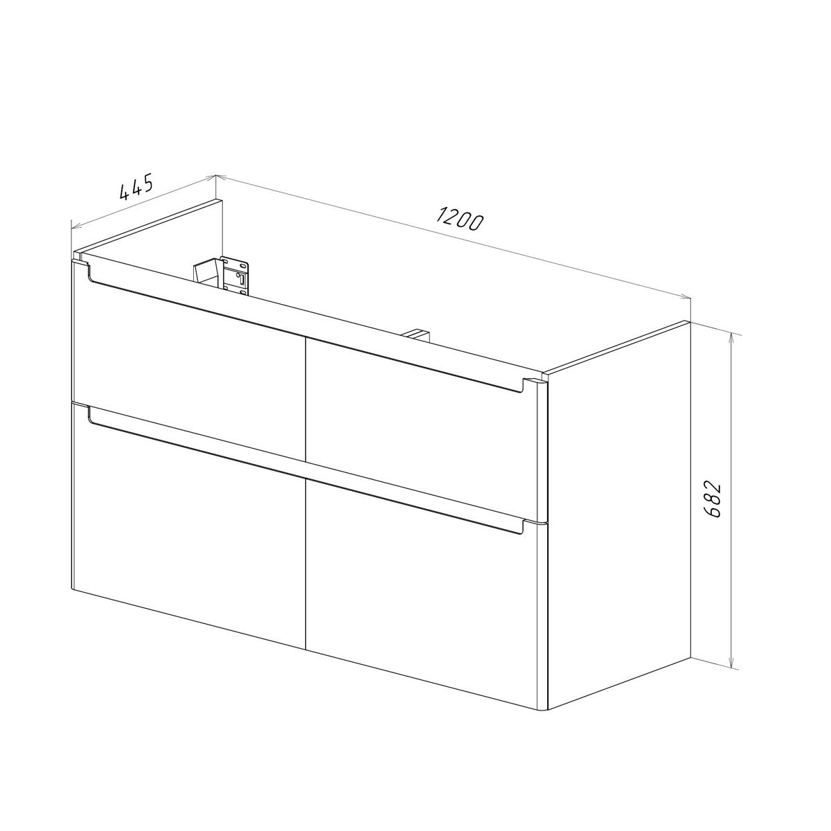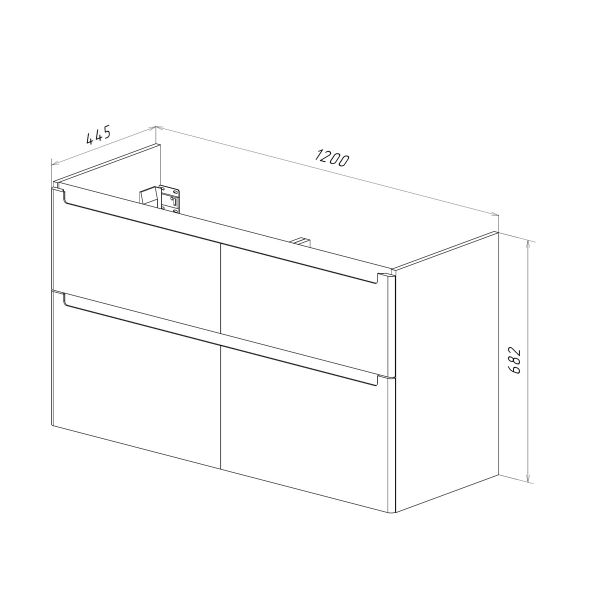 • Габариты без раковины (ШГВ): 1200х445х682 мм;