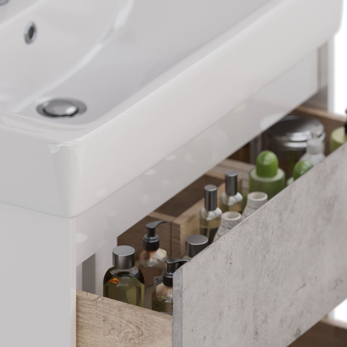 Тумба под раковину Lemark Combi LM03C80T-Beton 80 см белый глянец
