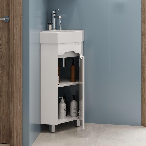 Угловая напольная тумба для ванной комнаты Onika Айленд 35 сочетает в себе стильный минималистичный дизайн, белую глянцевую поверхность и высочайшее качество исполнения. Тщательно продуманная конструкция позволяет занять минимум места, а угловая форма поможет с пользой использовать пространство, которое зачастую остается незадействованным. За дверью скрывается вместительное внутреннее пространство, разделенное полкой. Корпус тумбы выполнен из ЛДСП, фасад - из ЛМДФ в пленке, устойчивых к механическим воздействиям, перепадам температур и высокой влажности. Интегрированная в фасад ручка позволяет сделать эксплуатацию мебели более удобной и практичной.