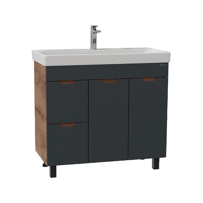 Тумба под раковину напольная Onika Айленд 109032 с корзиной 90 см графит/дуб крафт золотой купить