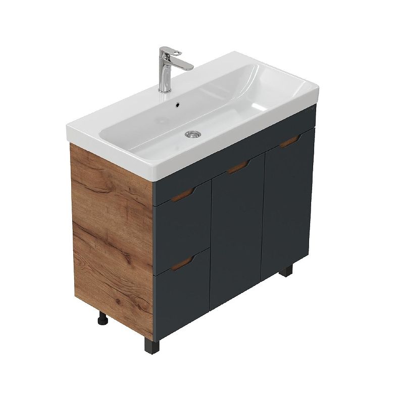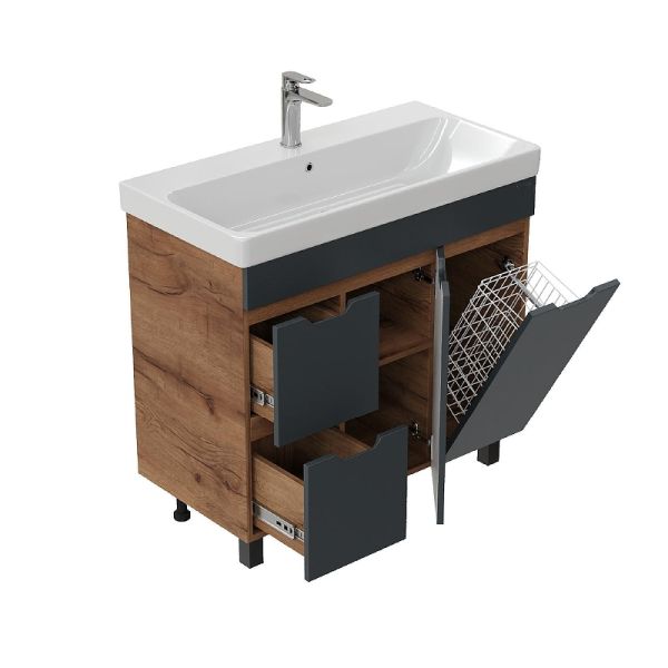 Тумба под раковину напольная Onika Айленд 109032 с корзиной 90 см графит/дуб крафт золотой