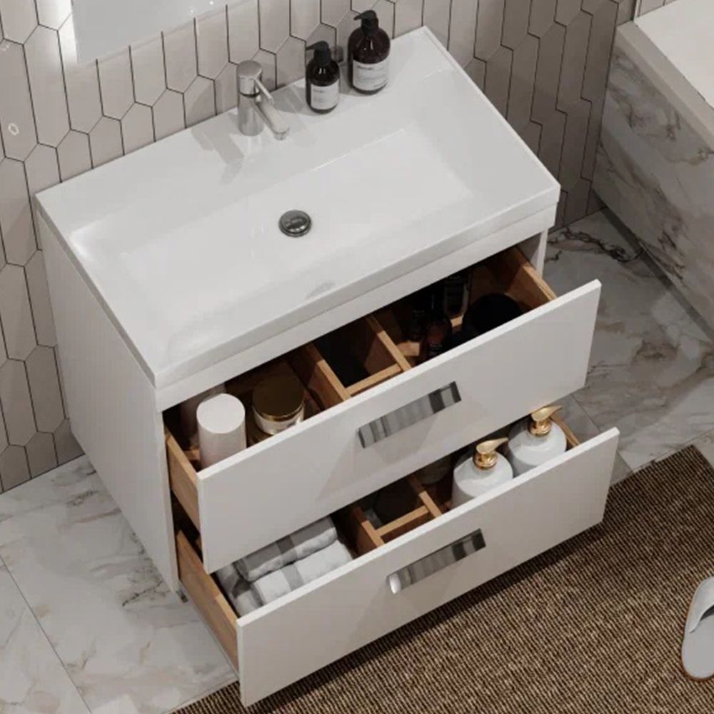 Тумба под раковину напольная Velvex Orlando tn.ORL.CLA.80.2Y белый матовый, 80 см: 2 выдвижных ящика с механизмом плавного закрывания.