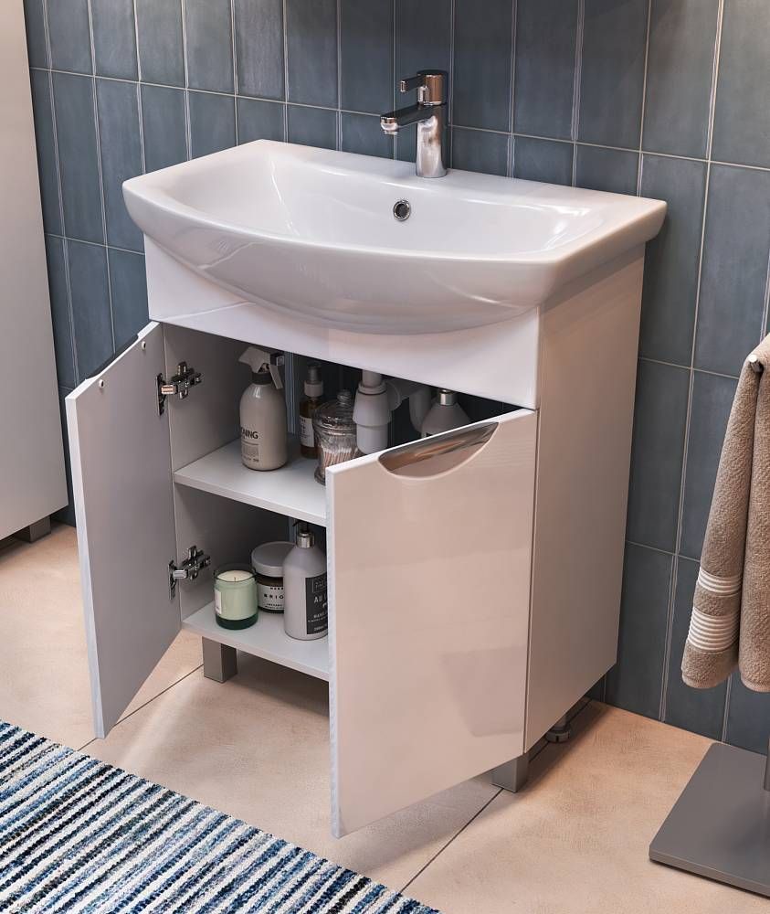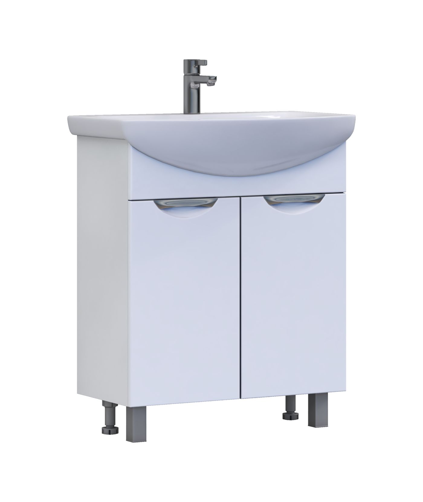 2 дверцы; 1 полка ЛДСП; ручка врезная металлическая хромированная; опоры квадратные регулируемыеМатериал корпуса: влагостойкая ЛДСПМатериал фасадов: ЛМДФПокрытие: пленка ПВХДверцы: петли с механизмом плавного закрывания.