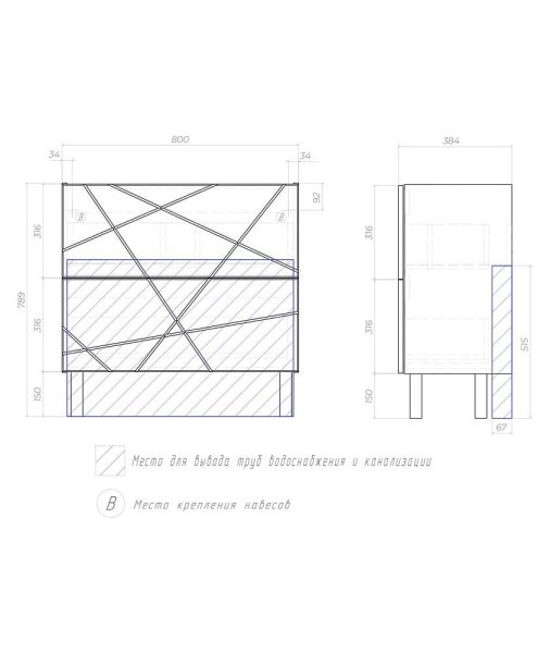 Тумба под раковину напольная Vigo Geometry tn.bsf.GEO.9696.80.2Y 80 см бетон купить