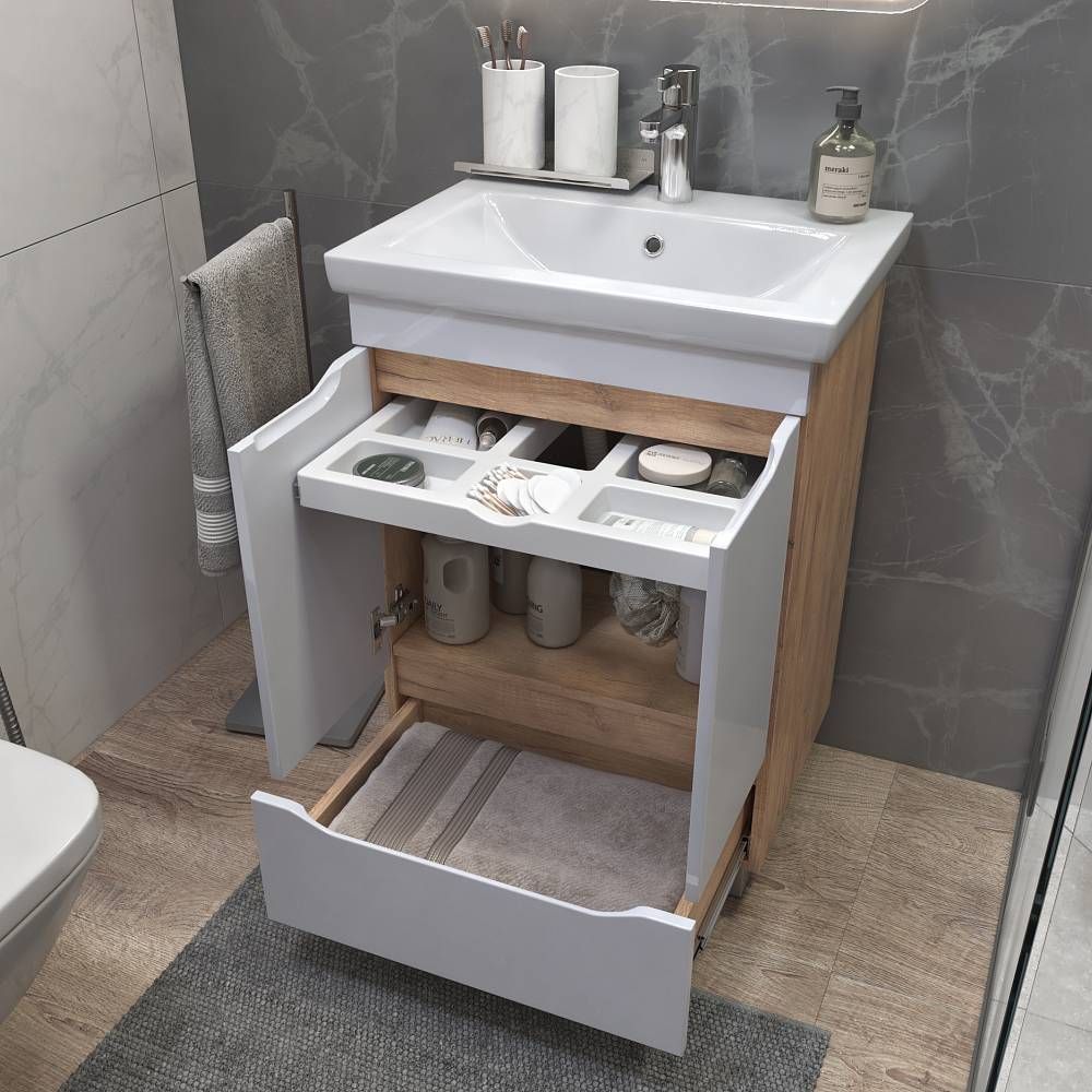 Тумба под раковину напольная VIGO Grani 284 дуб золотой, 60 см. Гарантийный срок 2 года. Монтаж: напольный. Доводчик: да. Нажимной механизм: нет.