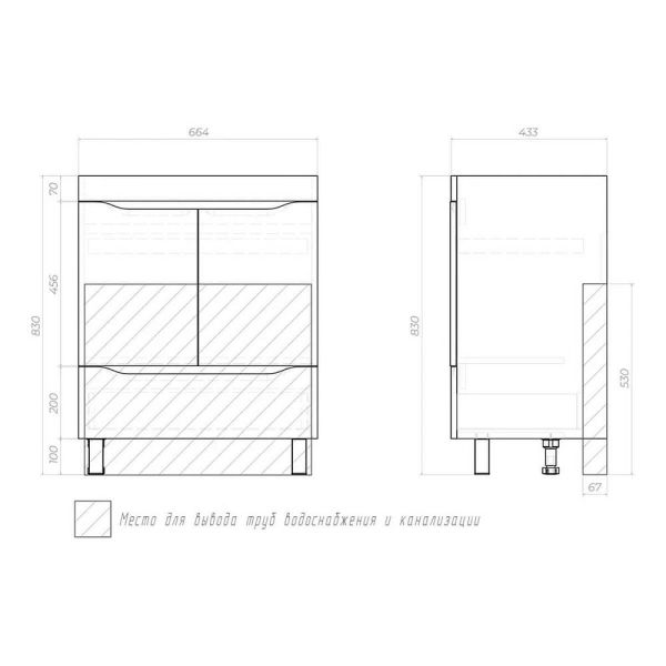 Тумба под раковину напольная VIGO Grani 285 дуб золотой, 70 см. Гарантийный срок 2 года. Монтаж: напольный. Доводчик: да. Нажимной механизм: нет.