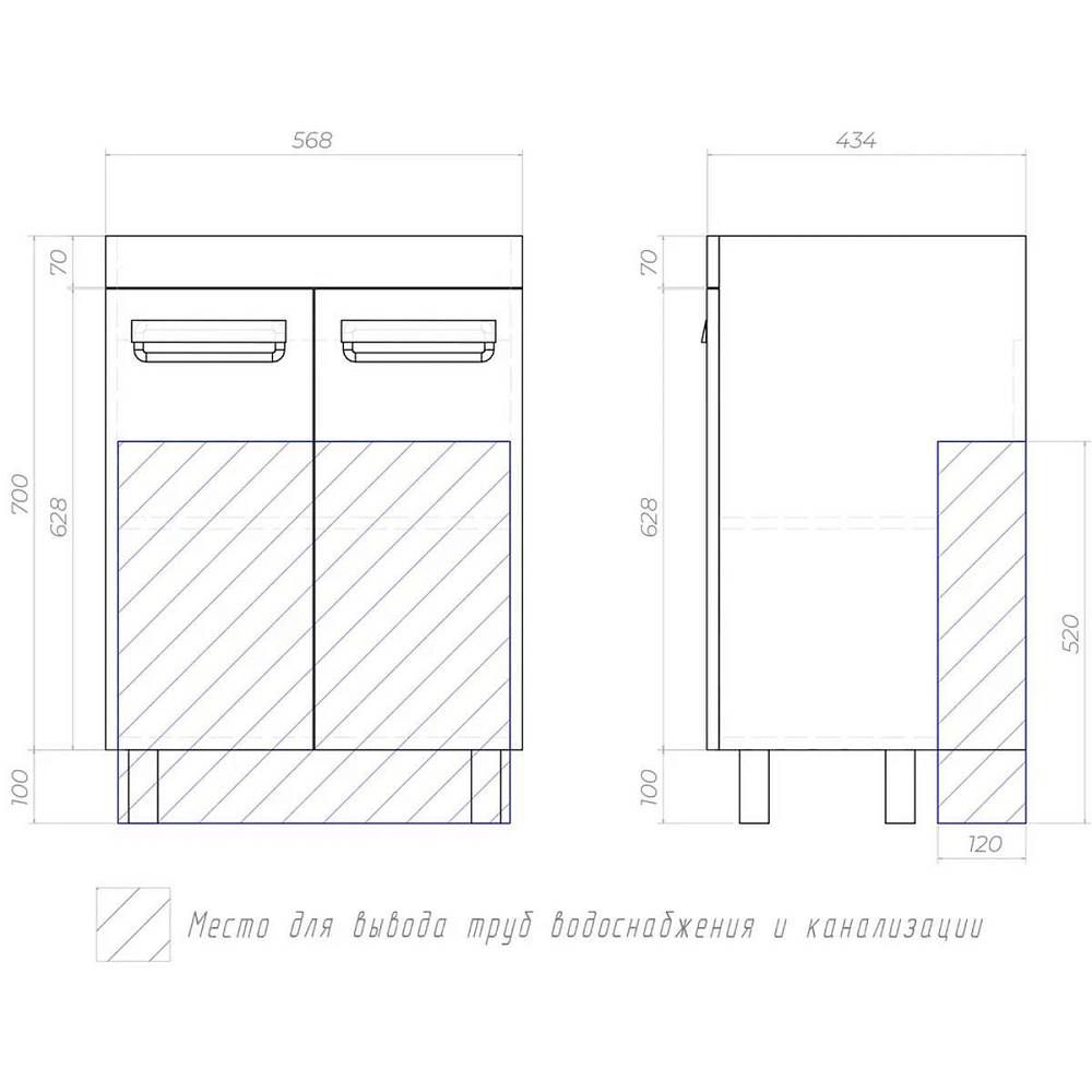 Тумба под раковину напольная VIGO Plaza 023, 60 см. Гарантийный срок 2 года. Монтаж: напольный. ... Подробнее