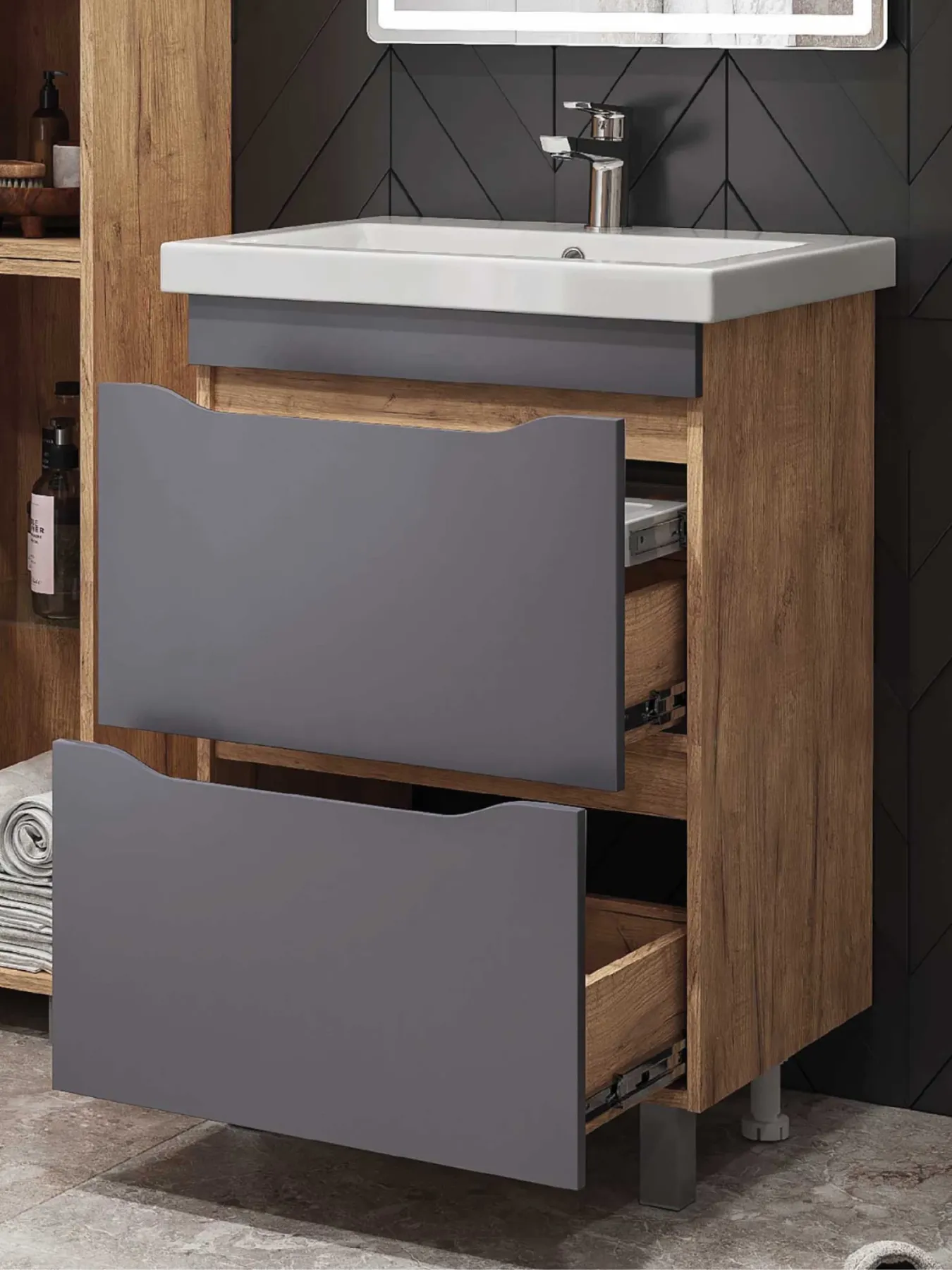 Тумба под раковину напольная Vigo Wave 358 60 см поставляется в разобранном виде дуб золотой