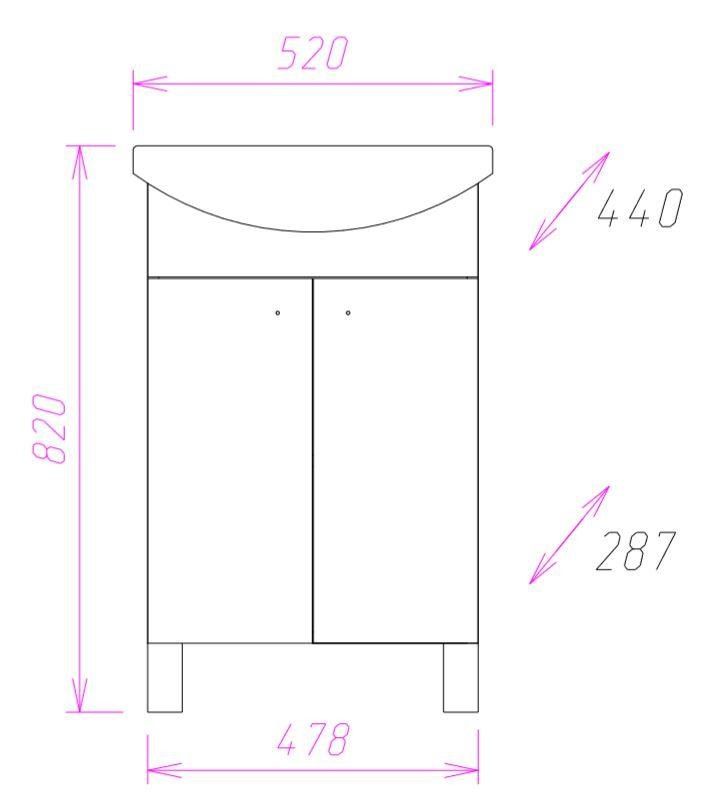 Размеры тумбы без учета раковины и ножек: 48х29х68 см.