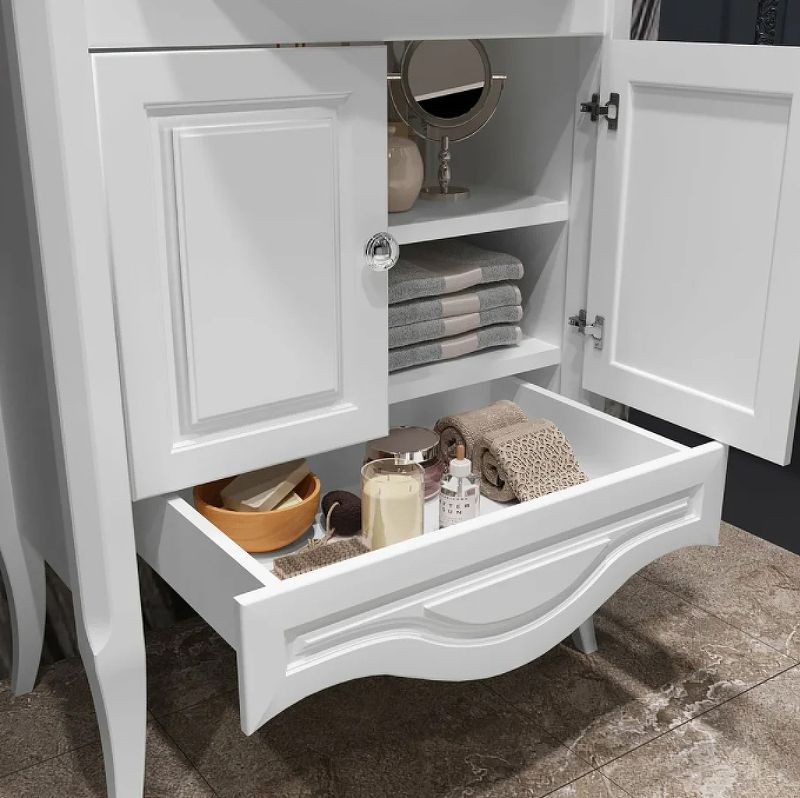 Две распашные дверцы и один выдвижной ящик с механизмом для плавного и бесшумного закрывания.
