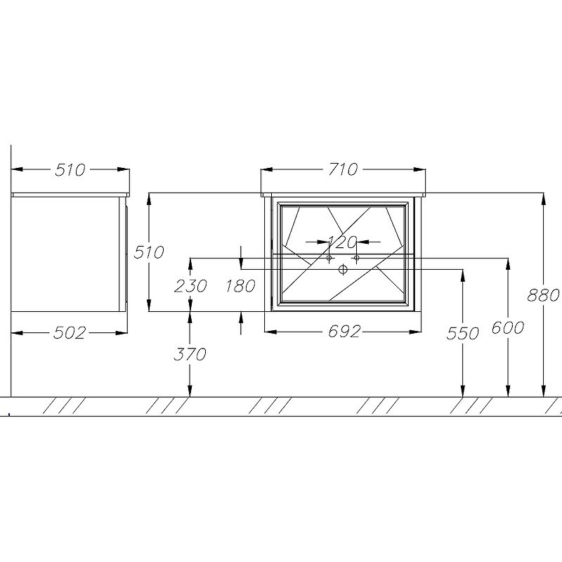 Габариты корпуса тумбы (ШхВхГ): 692х510х502 мм.