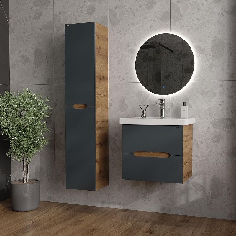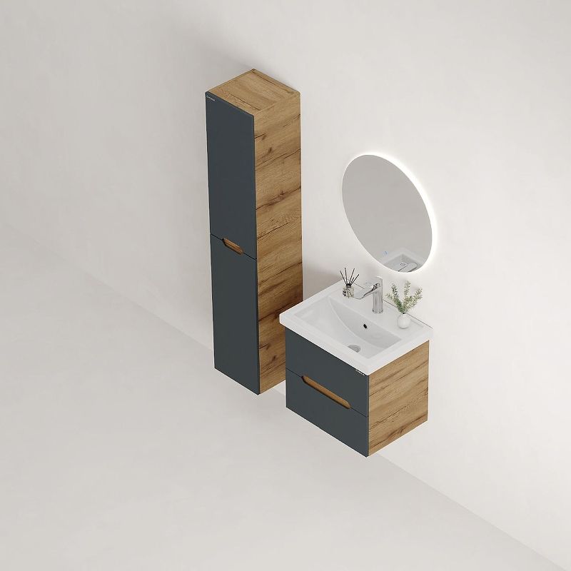 Подвесная тумба Onika Айленд 50 – это отличное решение для ванной комнаты, сочетающее стиль и практичность. Тумба впишется в любой интерьер благодаря трендовому сочетанию матового графита и золотого дуба, а также поможет эффективно организовать пространство, что особенно важно в небольших ванных комнатах.