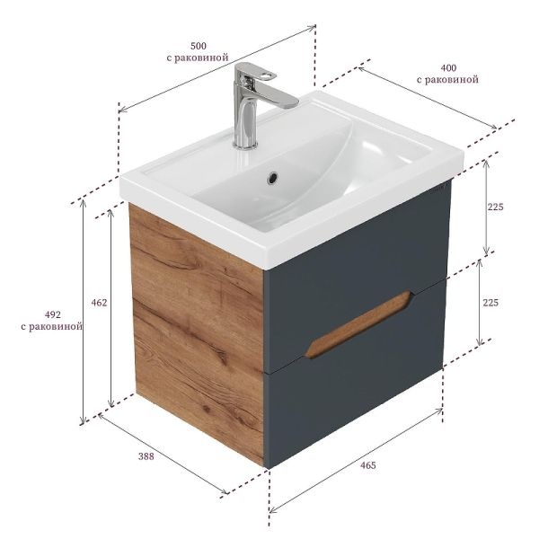 Размеры тумбы без учета раковины 47x39x46 см.