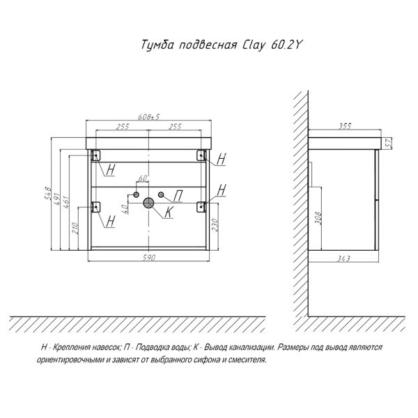 Тумба под раковину подвесная Velvex Clay tp.CLA.9595.60.2Y дуб верона, 60 см купить