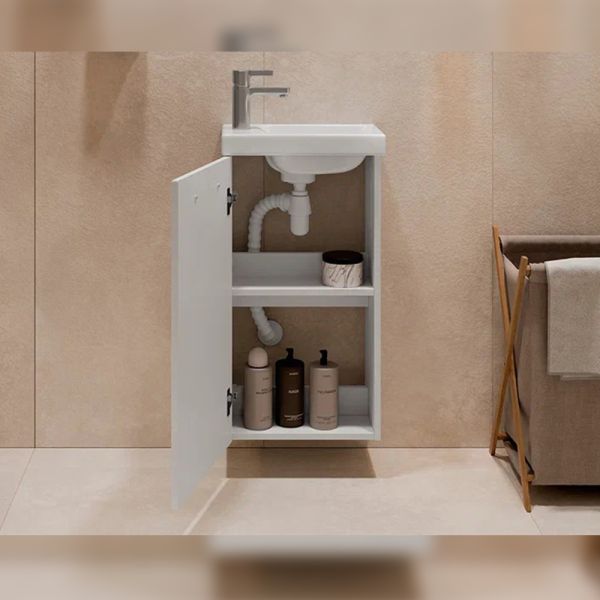 Тумба под раковину подвесная Velvex Estea tp.EST.MOD.40.1D, 40 см: 1 распашная дверца, петли с доводчиками, 1 полка из ЛДСП.