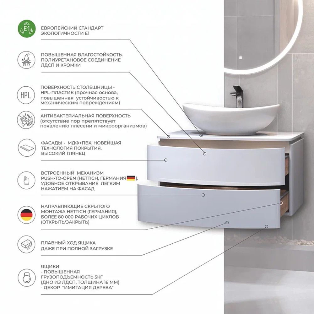 Тумба под раковину подвесная Velvex Luna tp.LUN.100.2Y, 100 см купить