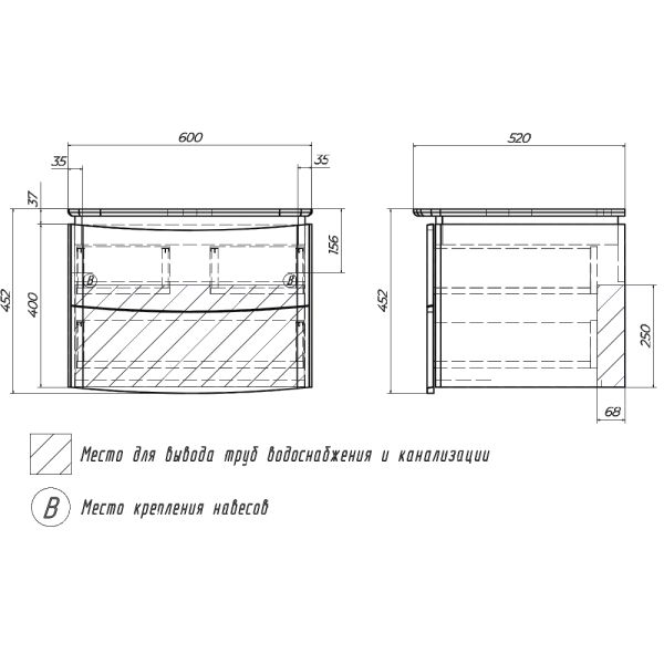 Тумба под раковину подвесная Velvex Luna tp.LUN.60.2Y, 60 см