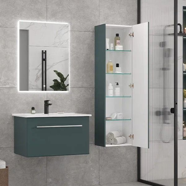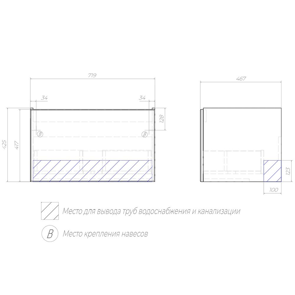 Тумба под раковину подвесная Velvex Posse tp.POS.OSK.75.1Y верде/дуб золотой, 75 см: 1 выдвижной ящик с механизмом плавного закрывания.