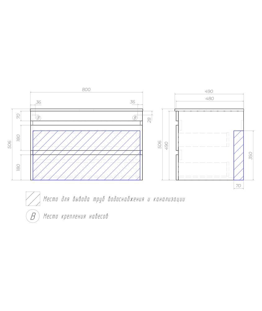 Тумба под раковину подвесная Vigo Urban tp.URB.80.2Y 80 см белый