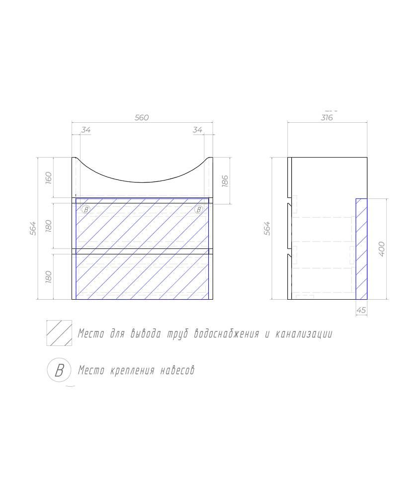 Тумба под раковину подвесная Vigo Wing tp.WIN.BAL.60.2Y белый