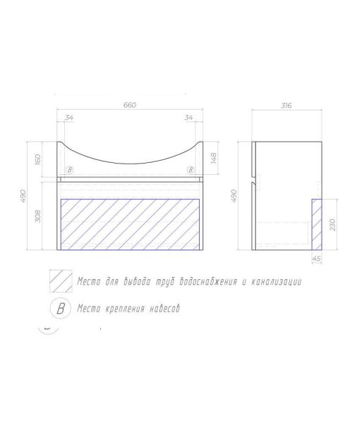 Тумба под раковину подвесная Vigo Wing tp.WIN.BAL.70.1Y 70 см белая