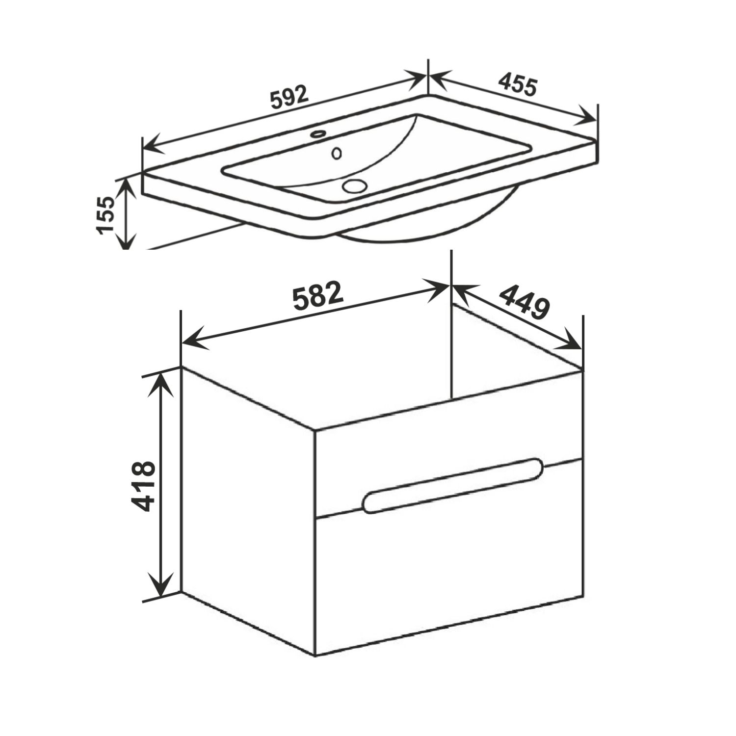 Тумба под раковину Runo графит 1 ящик подвесная (под умывальник Omega 60) Парма 60 (00-00001428)