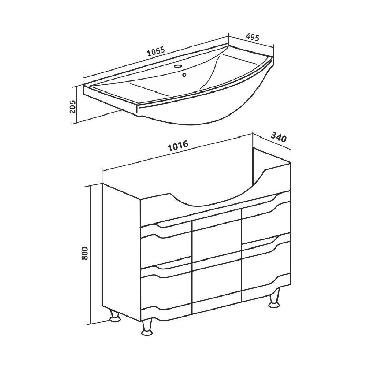 Тумба под умывальник на ножках с тремя распашными фасадами и двумя боковыми выдвижными ящиками. За центральной дверкой -одна внутренняя полка. Петли со встроенным доводчиком, ящики на шариковых направляющих полного выдвижения, ножки хром - 2шт, ножки пластик -2шт.