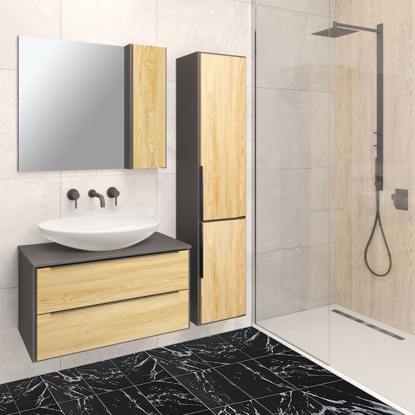 Тумба под раковину Runo подвесная дуб черный (под умывальник Moduo Square 50/ Гамма 56/ Infinity 85/ Moduo Leaf 55) Мальта 85 (00-00001099)