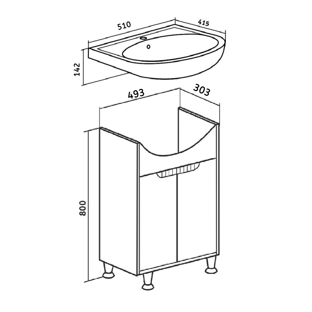 Тумба с раковиной RUNO ЭКО - превосходное решение для современного оснащения ванной комнаты. Тумба под раковину ЭКО (напольная) это стильное сочетание текстуры природного необработанного камня на корпусе с белыми фасадами из ДСП. Тумба в ванную имеет две распашные дверцы и одну внутреннюю полку. В комплекте идут петли, 2 хромированные и 2 пластиковые ножки. Тумба для ванной комплектуется керамической раковиной "Уют" (500*420 мм). Раковина имеет глубину 18 см. Мебель для ванной RUNO - красота и практичность в мелочах!