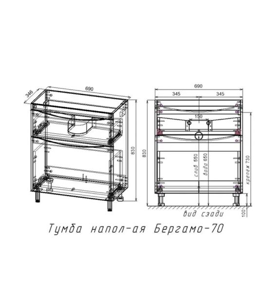 Тумба под раковину Style Line El Fante Бергамо мини 70 Люкс антискрейтч Plus, 70 см, напольная, белая, СС-00002310Основные характеристики:Тумба под раковину