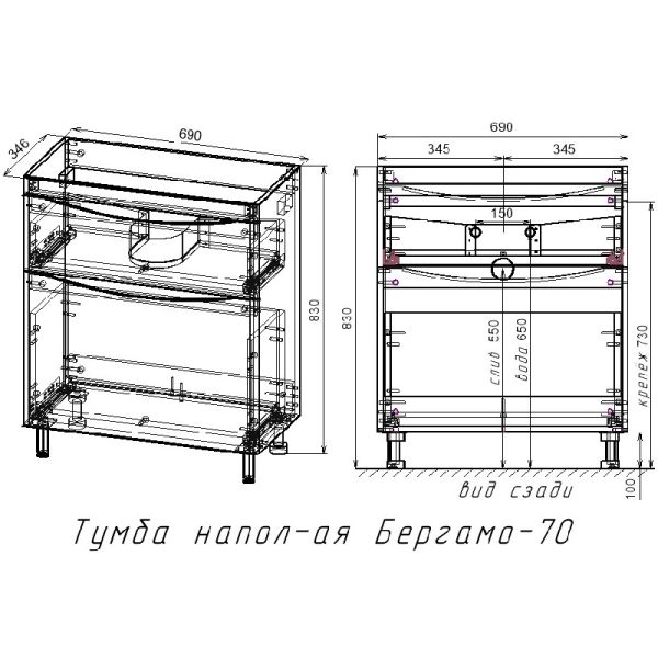 Тумба под раковину Style Line El Fante Бергамо мини 70 Люкс антискрейтч Plus, 70 см, напольная, черный, СС-00002311Основные характеристики:Тумба под раковину