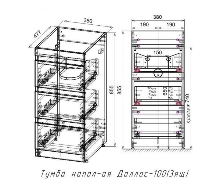 Тумба под раковину Style Line El Fante Даллас 100 Люкс Plus, 100 см, напольная, 3 ящика, белый, АА00-000069Основные характеристики:Тумба под раковину для установки со стиральной машиной