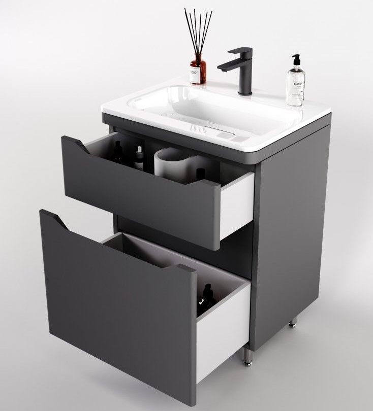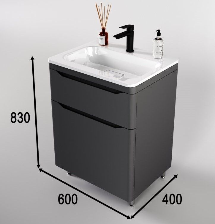 Тумба под раковину Style Line Марелла 60 Люкс Plus СС-00002397 серый матовый