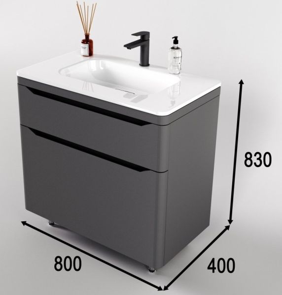 Тумба под раковину Style Line Марелла 80 Люкс Plus СС-00002403 серый матовый