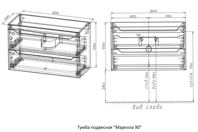 Тумба подвесная Марелла 90 Люкс Plus - 1 шт.