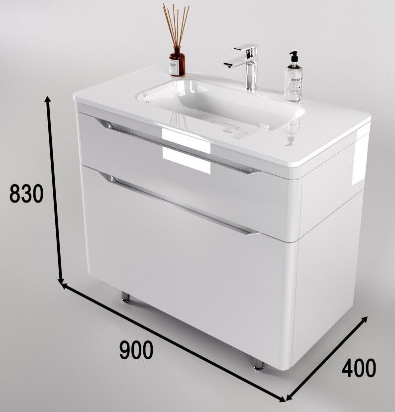 Тумба под раковину Style Line Марелла 90 Люкс Plus СС-00002417 белый глянец