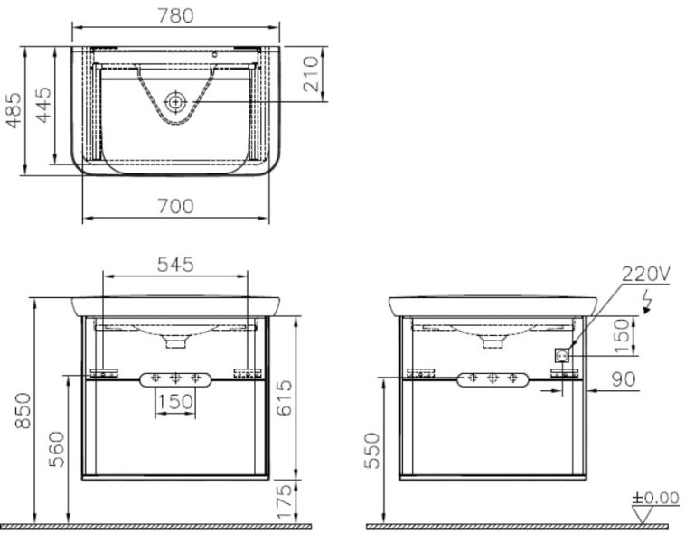 Тумба с раковиной VitrA Sento 60824 78 см
