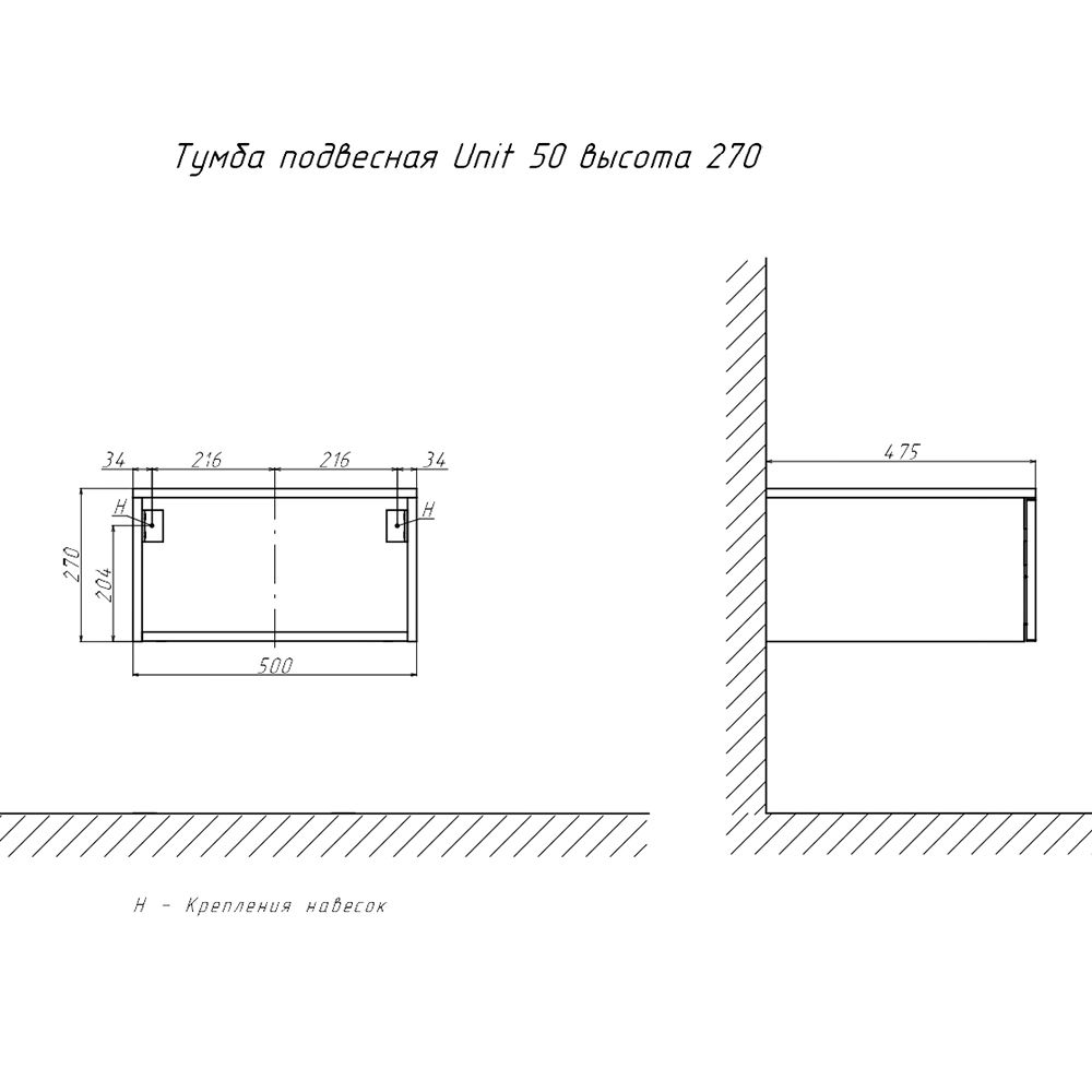 Тумба подвесная без столешницы Velvex Unit tp.UNI.50.1Y белый матовый, 50 см