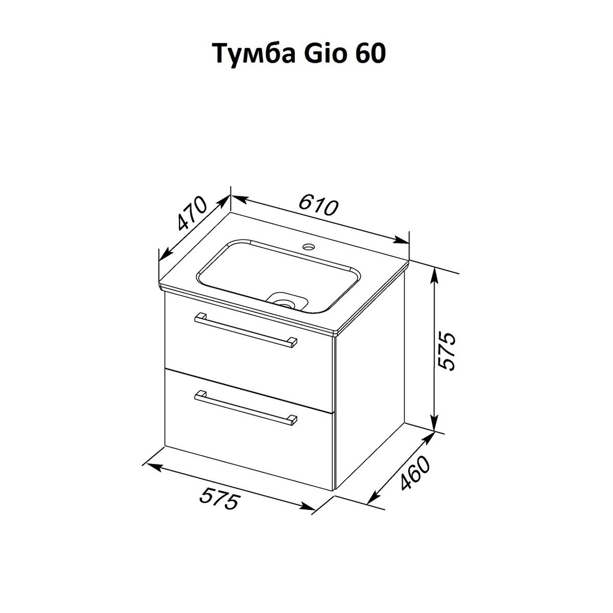 Тумба подвесная Dreja.Rus GIO 60 под умывальник Эйфория-60, дуб кантри