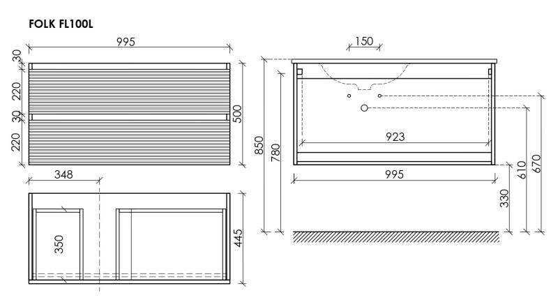 Размер 995х445х500, левая