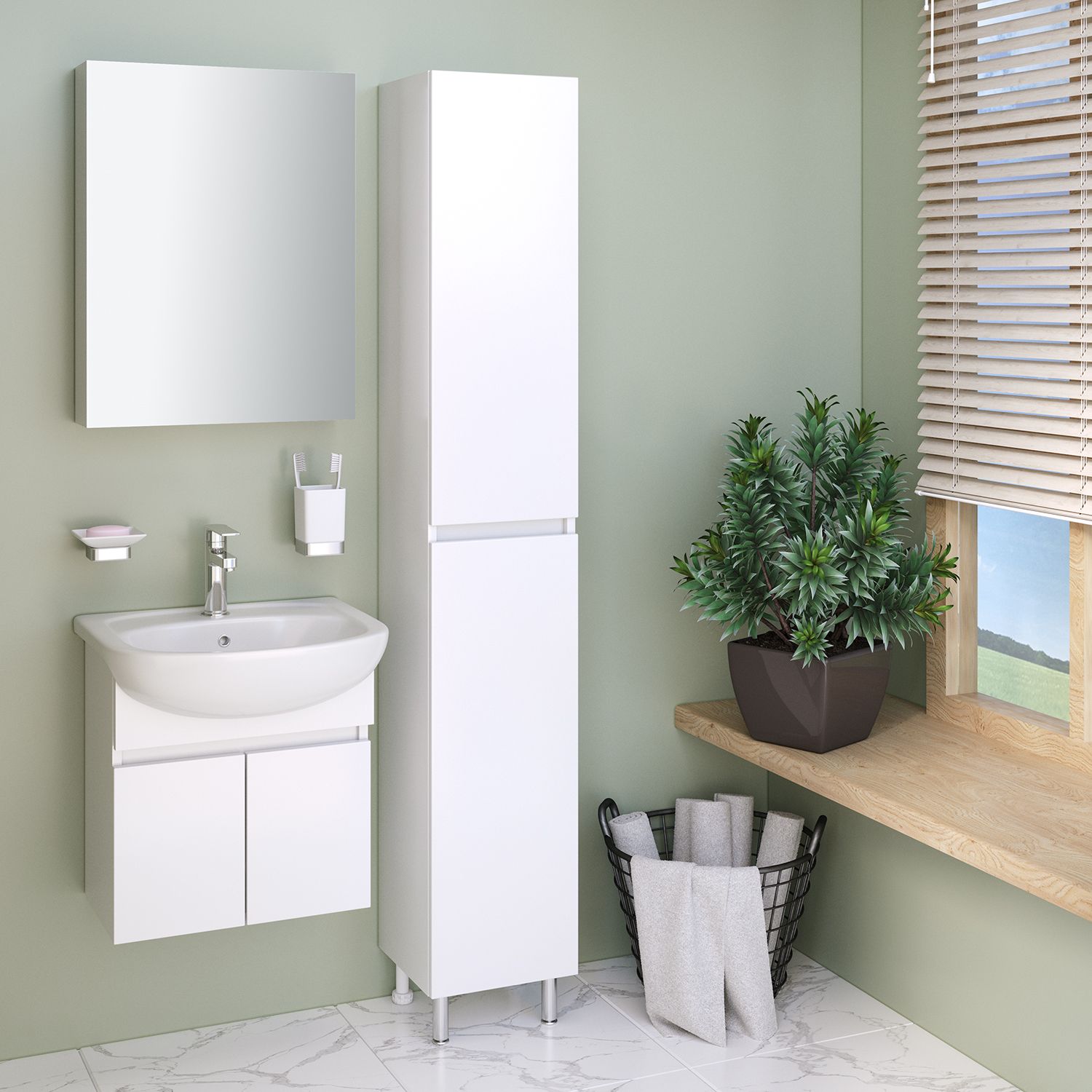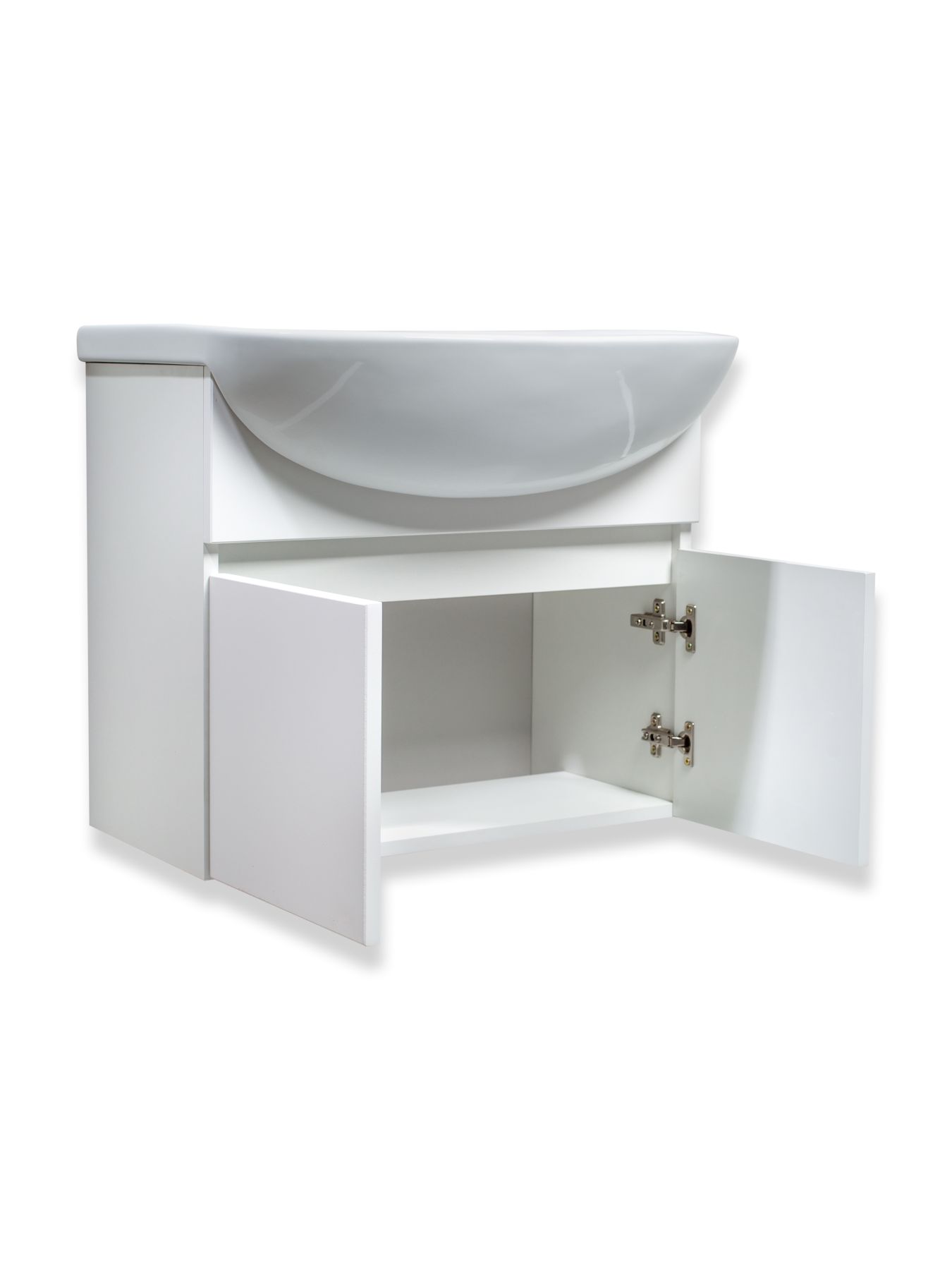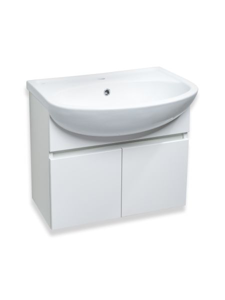 Тумба под раковину для ванной RUNO ЛАДА - модное и оригинальное решение для бюджетного оснащения ванной комнаты. Коллекция мебели ЛАДА выполнена в трёх цветах - классическом белом, в стильных и модных цветах - графит и крафтовый дуб . Тумба под раковину оснащена двумя распашными дверцами, каждая дверца укомплектована двумя петлями, верхняя с доводчиком, нижняя без доводчика. К тумбе подходит керамическая раковина "Уют" (500*420 мм). Раковина глубиной 18 см. Мебель для ванной RUNO - красота и практичность в мелочах!