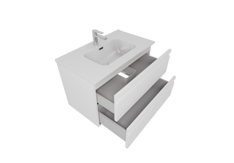 Мебельная раковина: Раковина из 100% санфарфора с идеальной гладкой поверхностью не только выглядит стильно, но и обеспечивает легкость в уходе. Несмотря на компактную глубину, раковины обладают достаточно вместительной чашей, предотвращающей разбрызгивание воды.