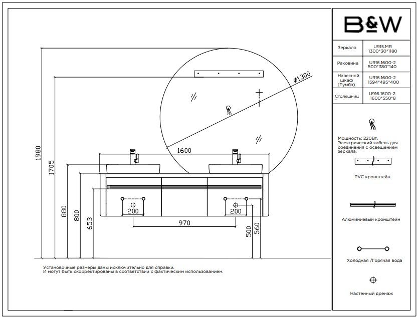 Тумба с раковиной Black&White Universe 9161600-2 Double 160 см бежевый купить