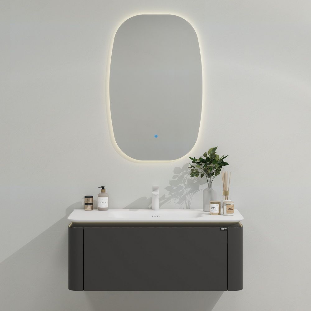 Тумба с раковиной для ванной комнаты датского производителя Black&White в габаритных размерах 120x52x40 см.Данная версия является продолжением линейки U 925 в сером цвете. Раковина — столешница изготовлена из не пористого искусственного камня Corian, который тактильно ощущается как soft touch материал, он легок и прост в уборке,а слив оборудован донным клапаном хромированного цвета. База производится из влагостойкой девятислойной фанеры и покрыта эмалью для долгосрочного сохранения материала.Важной особенностью является контурная диодная подсветка, которая расположена по периметру столешницы.На тумбе предусмотрен один выдвижной ящик, оборудованный фурнитурой UniHopper с доводчиками.Коллекция U 935– эргономичный и продуманный продукт,который наполнит Вашу ванную комнату уютом, а плавные и утонченные формы впишутся в любые современные интерьеры.