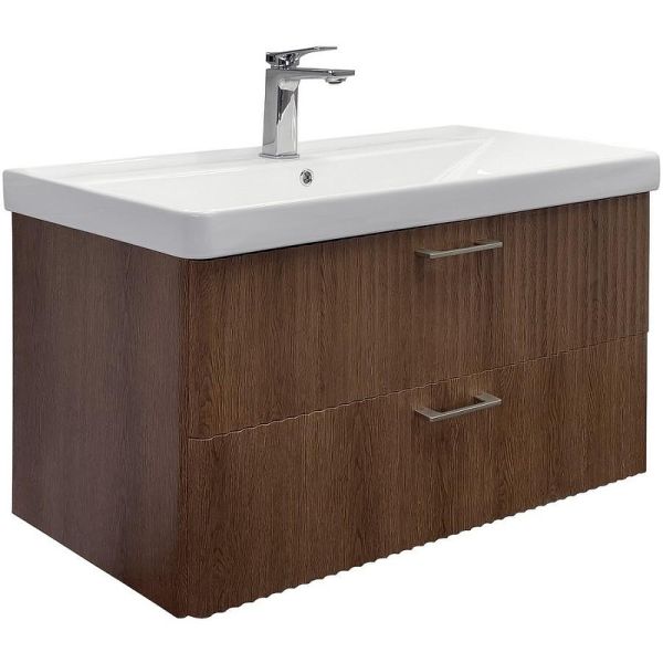 Тумба с раковиной Comforty Ангара 90 00-00021037 подвесная Дуб темно-коричневый купить